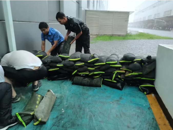 生产制造部组织各生产单位积极行动,组织排查厂区漏水点、搬运防汛沙袋、封堵返流区、清理排水口、清除积水、确保人员设备和厂房的安全,并对重点区域进行二次加固防汛。